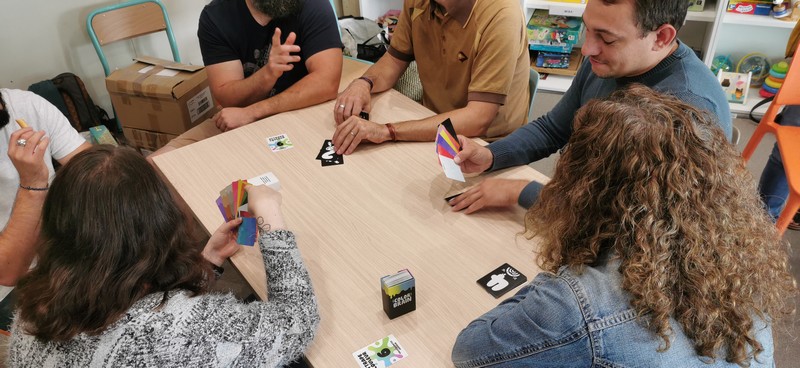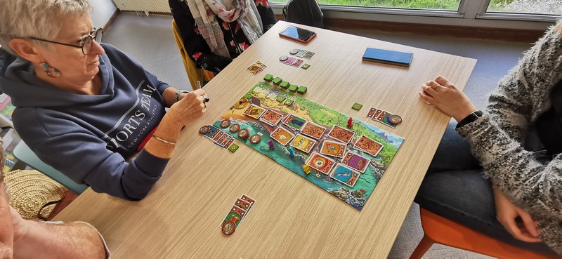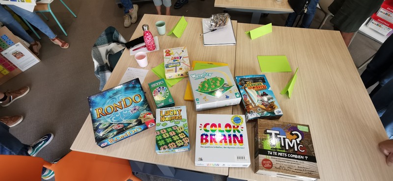 Des jeux de sociétés comme : Color Brain ou TTMC en équipe afin de ne pas mettre en difficulté les personnes (culture), Rondo pour ceux qui l’ont ;-), Just One (attention à la crainte de l’écriture : capacité ou crainte), la planche des Pirates (sans infantilisé le public, ça reste simple et fun) et enfin Sky-jo et Lucky number (le coté loto avec un peu de contrôle)