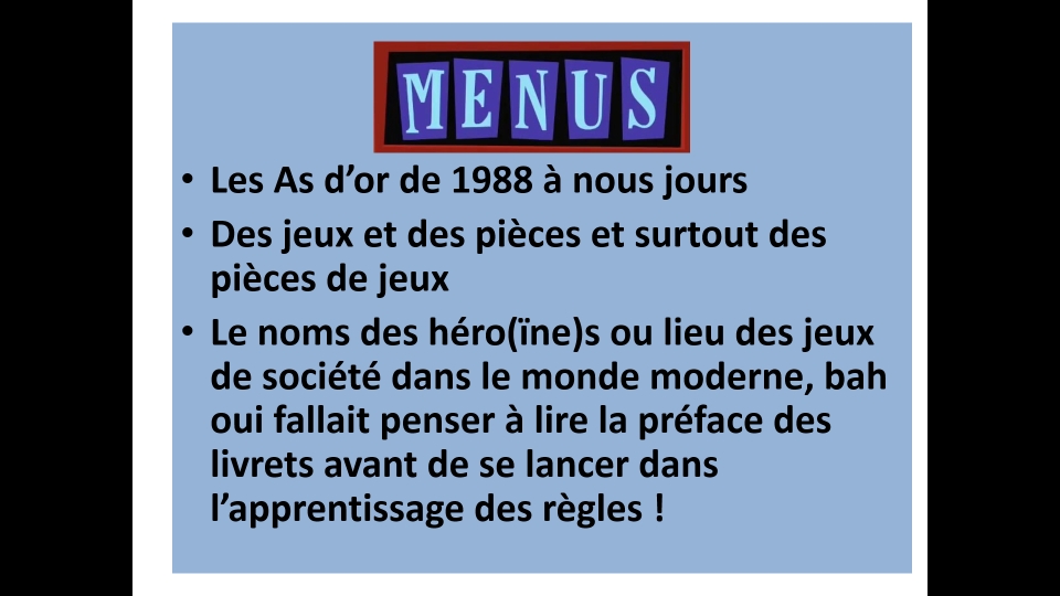 Retour au gîte pour une réunion des membres du C.A pour finaliser l’AG puis Burger Quizz spécial ludothécaire avec une courte victoire des Tomates Ketchup 25 à 23 face aux Miiiiiples jaunes mayo, qui échouent sur la 9e questions du burger de la Mort.