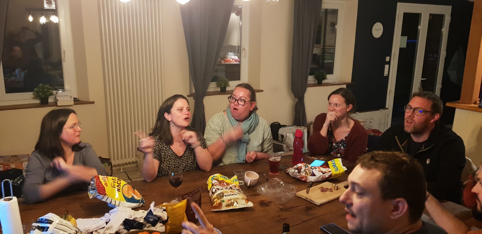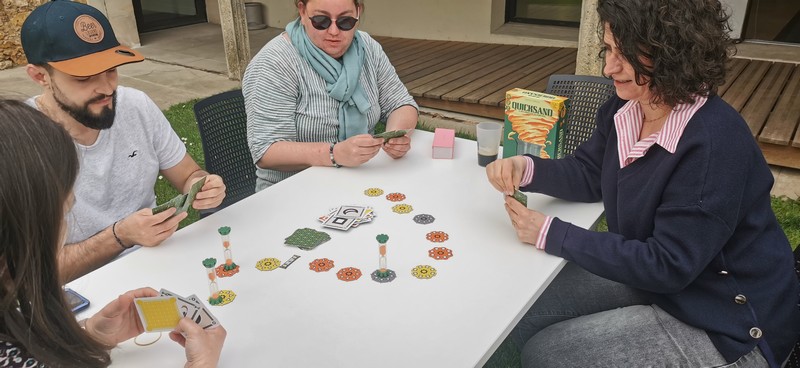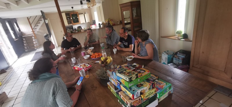 Excellent moment entre ludothécaires normands du coté d’Etrepagny. 10 à 12 ludothécaires présents tout au long du weekend. Accueil à la vache à Lunette pour un apéro concert, puis soirée jeu au gîte. Matinée d’échanges sur l’accueil de la Petite Enfance en ludothèque et du jeu « sans enfant ». Échanges constructifs sur nos pratiques et réflexions sur ces deux sujets et un bon repas à base de pâtes. Sans oublier la victoire de Simon et Gregory qui ont répondu aux 15 questions de « Qui veut gagner des p’tits pions » ![]()
