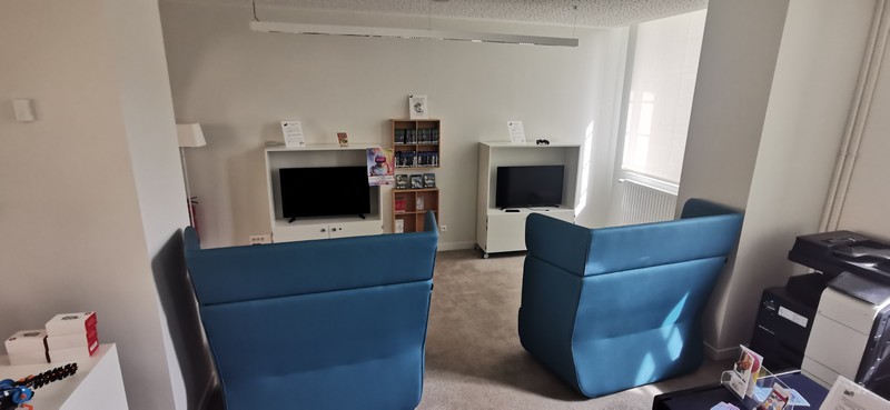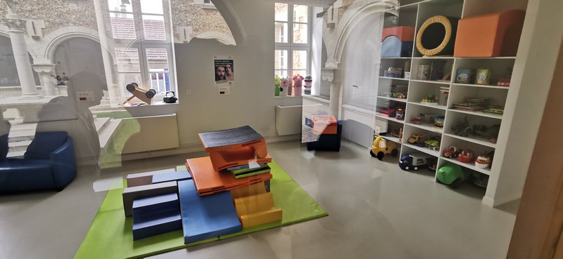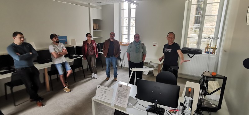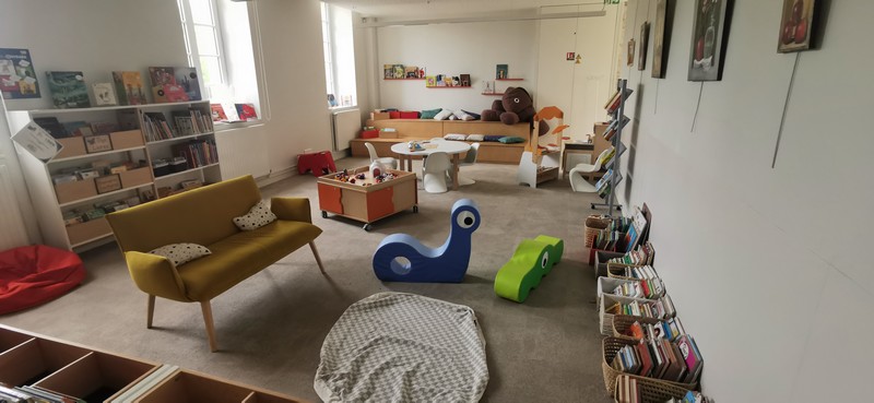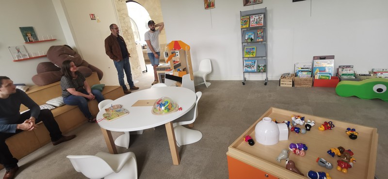 Visite des lieux par Christophe où nous découvrons une des plus belles bibliothèques de France, si si, diplôme à l’appuie ! Ancien couvent réhabilité en ludo-médiathèque mais pas que, il y a également une maison de santé, France service, Pôle enfance, zone multi accueil et les bureaux de la com com.