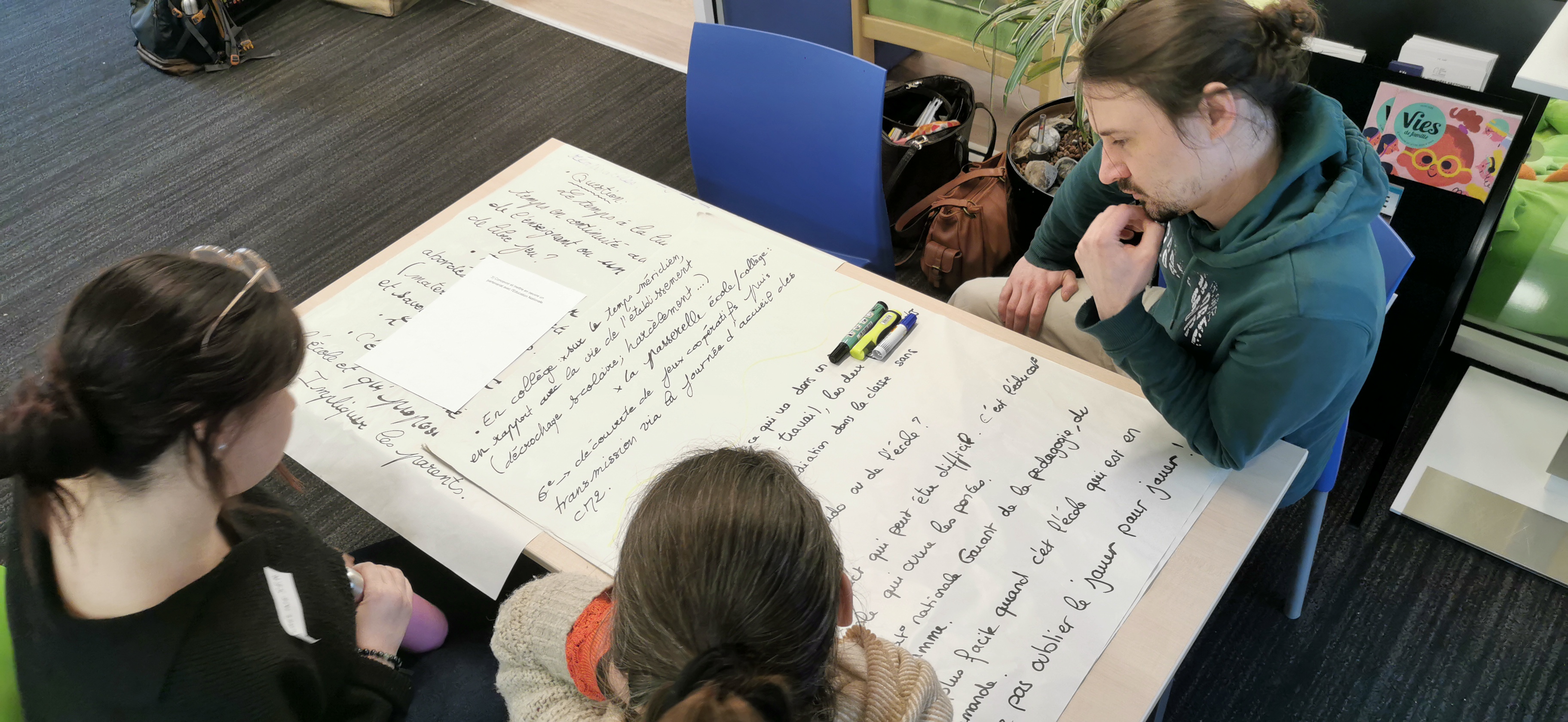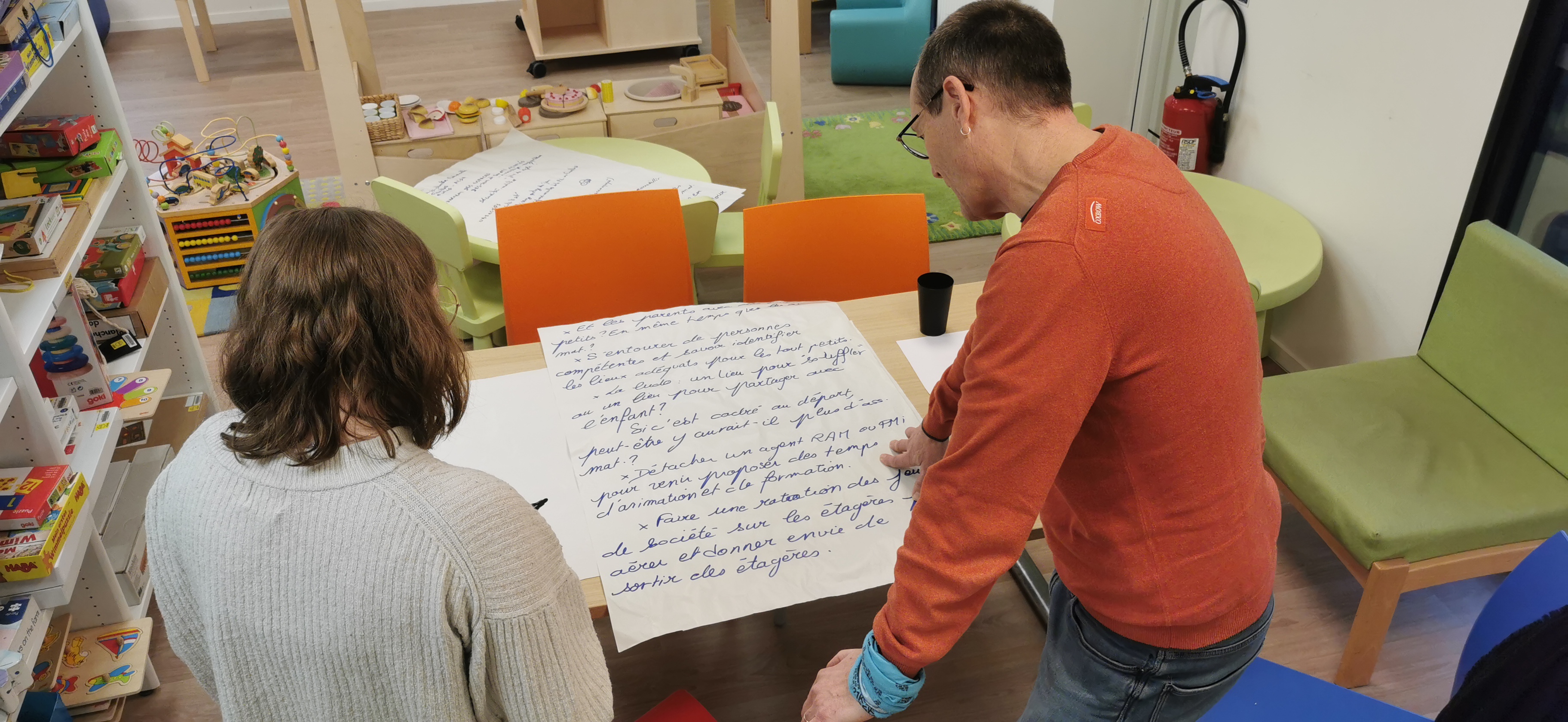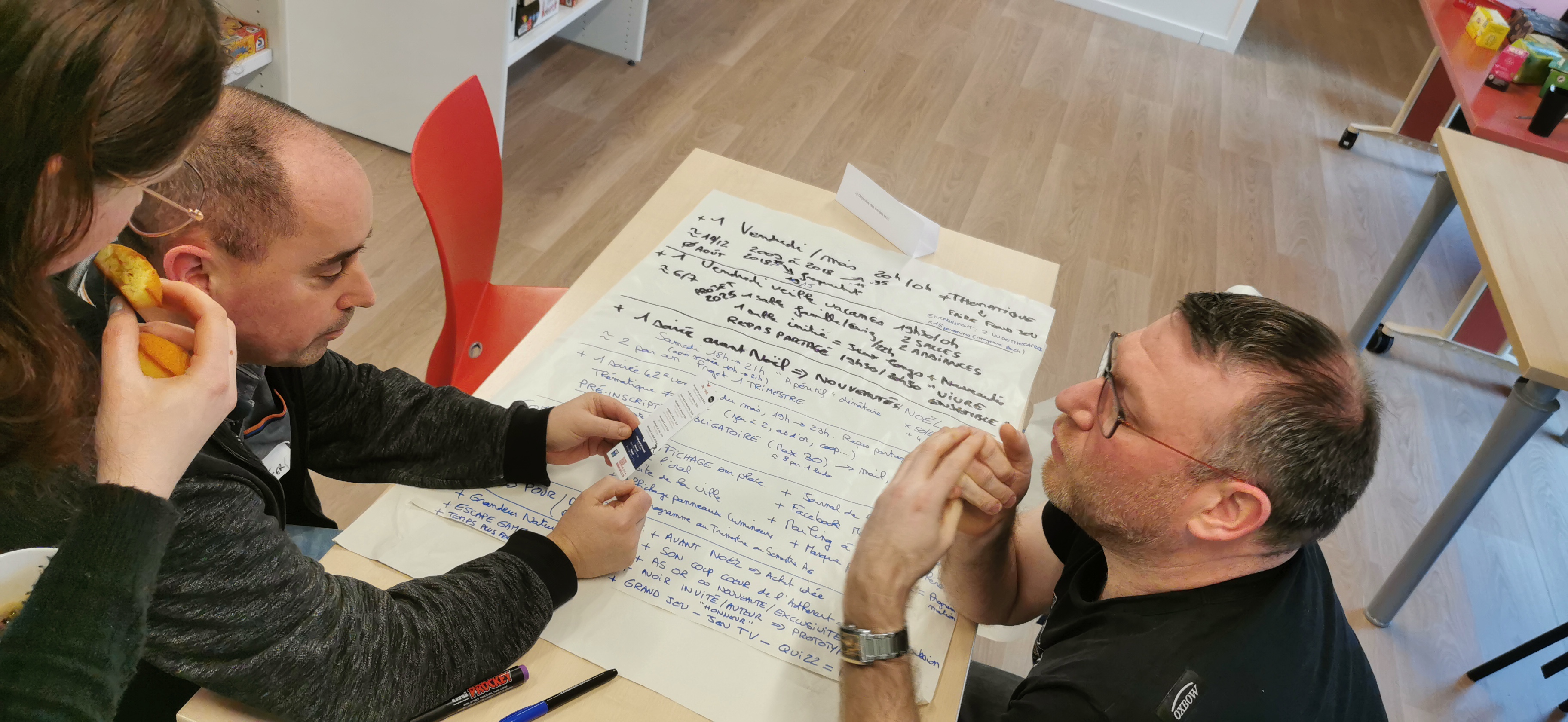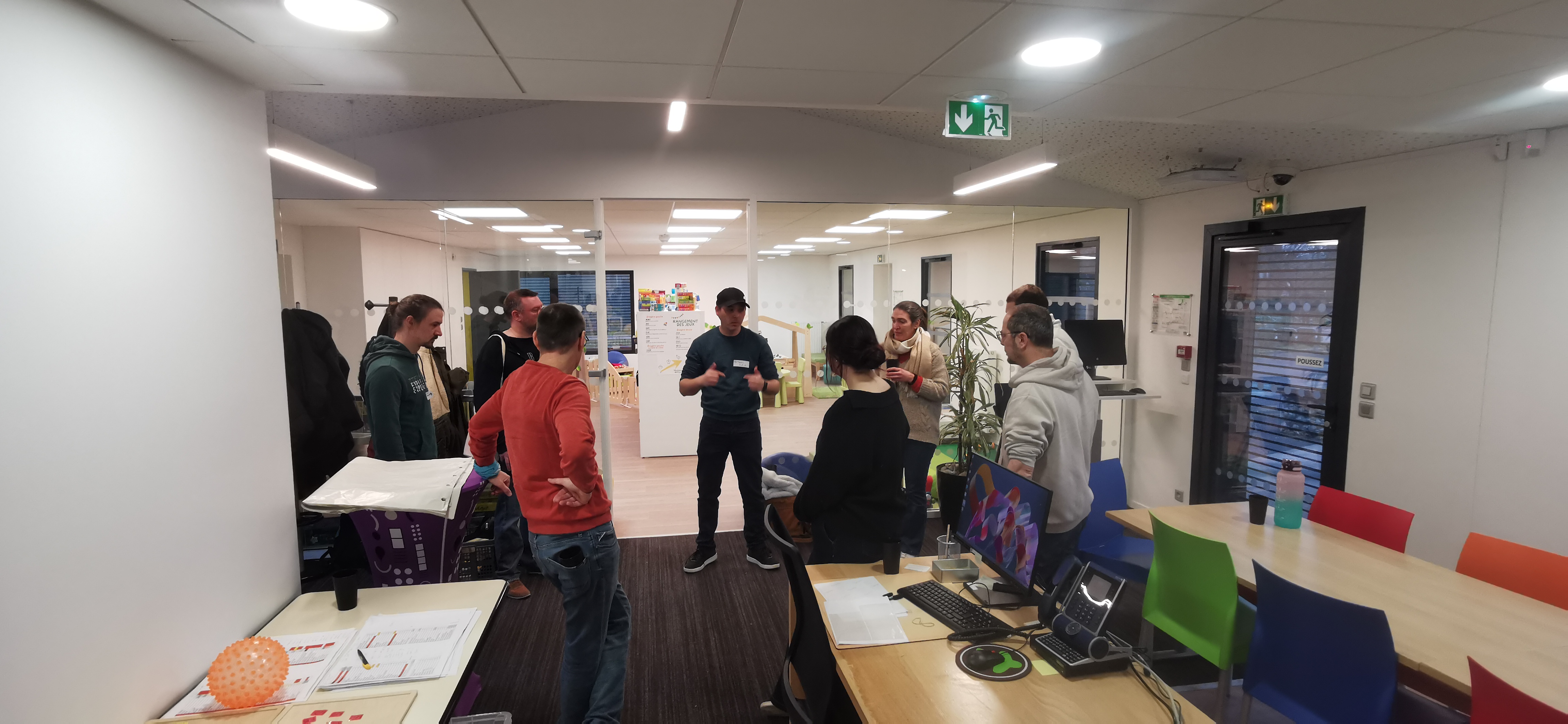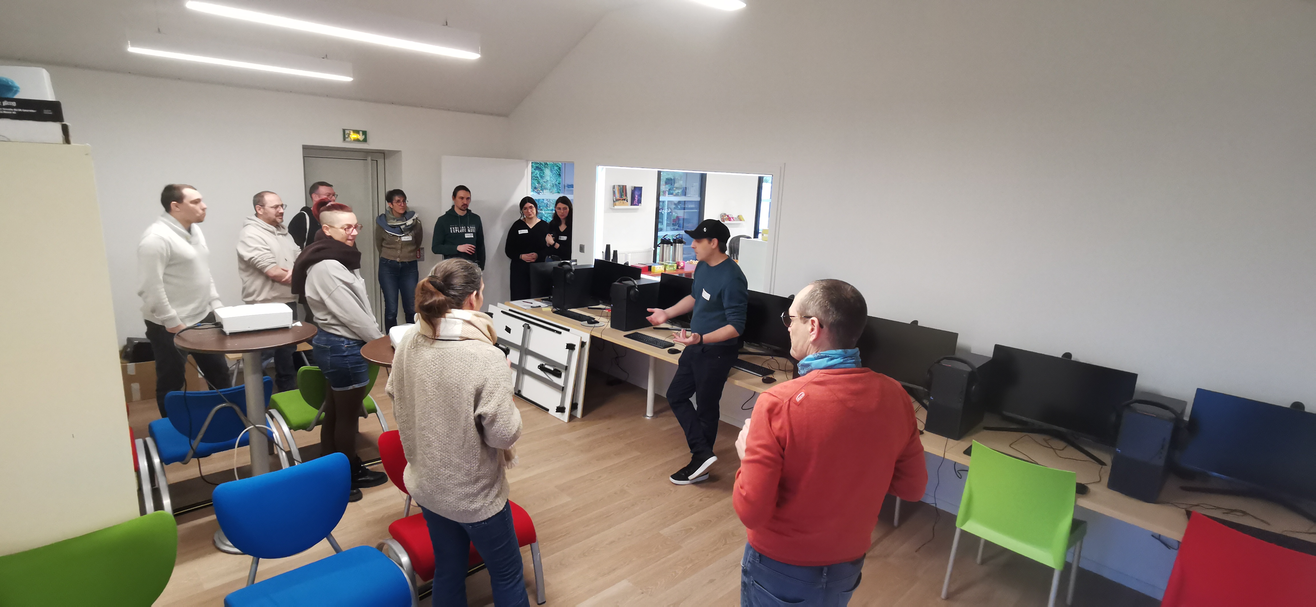 Réunion 27-76 à la nouvelle ludothèque de St Étienne du Rouvray, 21 ludothecaires de 15 ludothèques se retrouvent pour la visite, l’actualité régionale et nationale, échanges de pratiques et un travail sur 6 thématiques sur un mode world café.