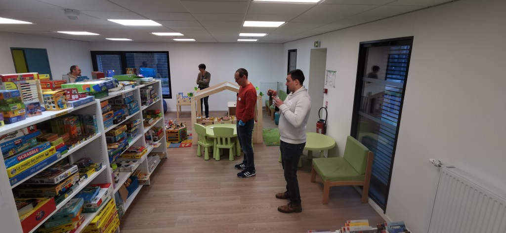Un ENORME merci à toute l’équipe de la ludothèque de St Etienne du Rouvray : Gregory, Marine, Anthony et Guillaume pour leur accueil, visite, explications, organisation logistique.