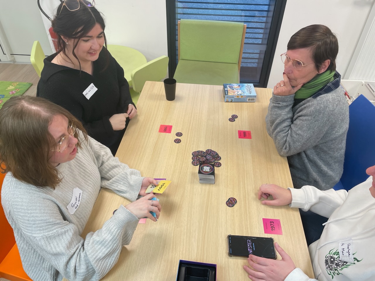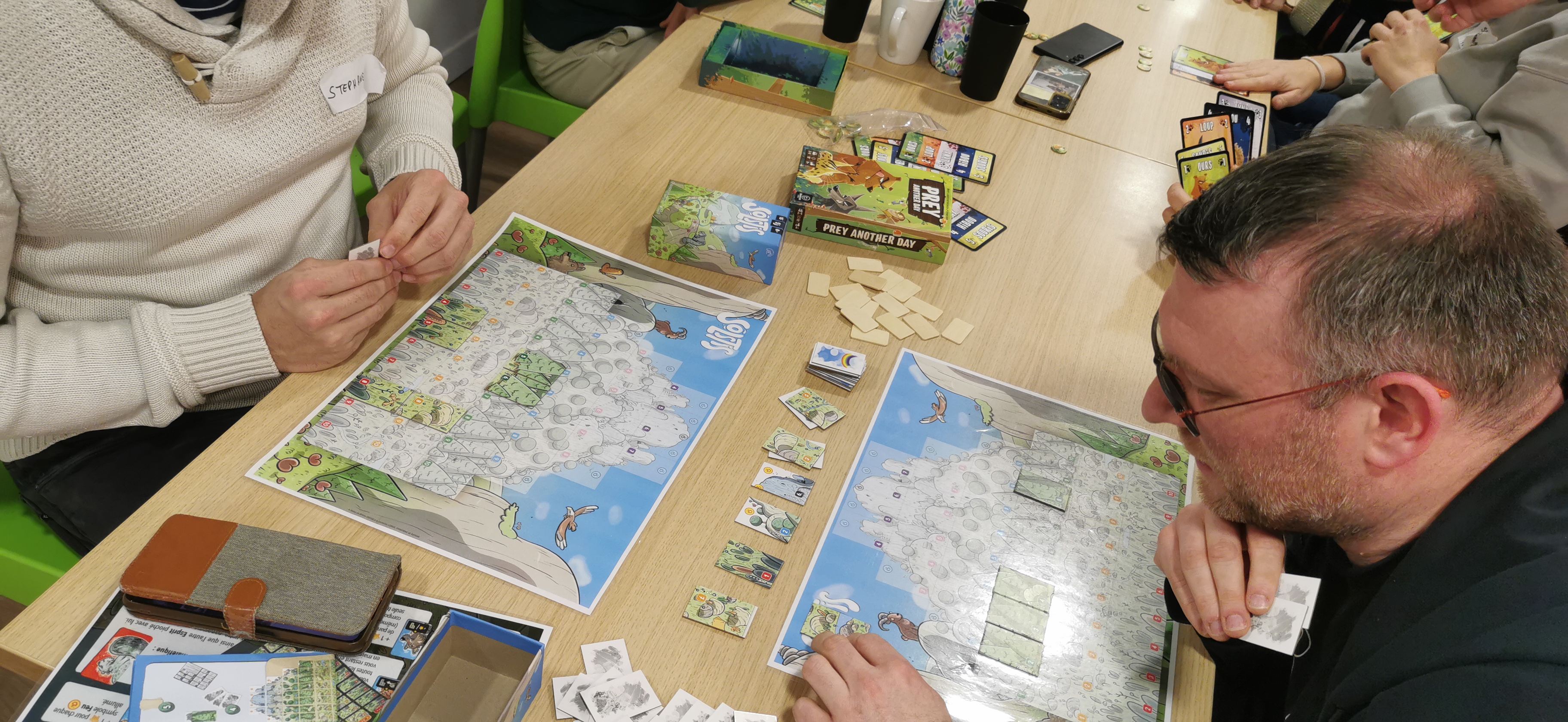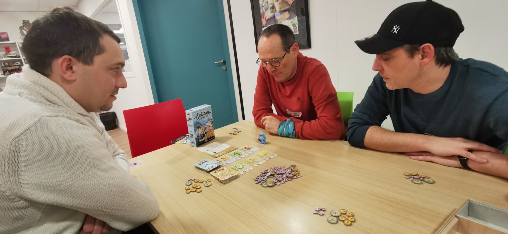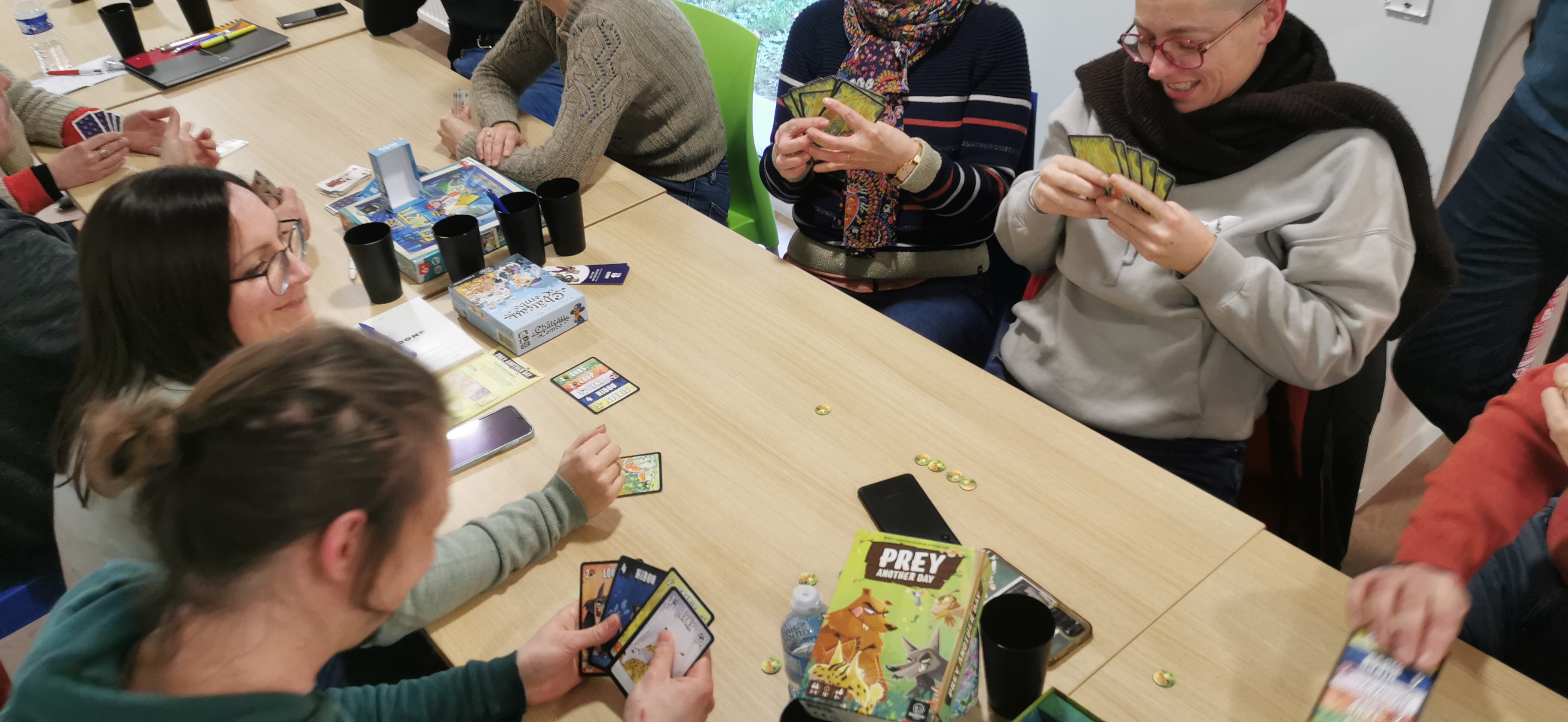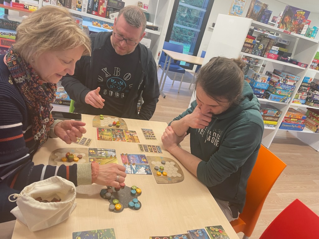 On termine la journée par un temps de jeu, sans doute trop court, car la journée à été dense. Important de se faire découvrir les coups de coeur, surtout pour les collègues isolés dans leur structures. Au programme : Château Combo, Solstis, Prey Another Day, Harmonies, Maudit Mot Dit, Hitster, Monstrolicius, CrackList, Odin, Darts Pitch Game.