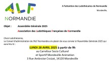 Chers ludothécaires,Le Conseil d’administration de l’ALF Normandie a le plaisir de vous convier à l’Assemblée Générale 2025 qui aura lieu le : LUNDI 28 AVRIL 2025 à partir de 9hau Carrefour Socio Culturelet Sportif Mondeville Animation3 Rue Ambroise Croizat, 14120 Mondeville L’ordre du jour :9h00 à 10h00 : – Accueil ludique des participants10h00 à 12H00…